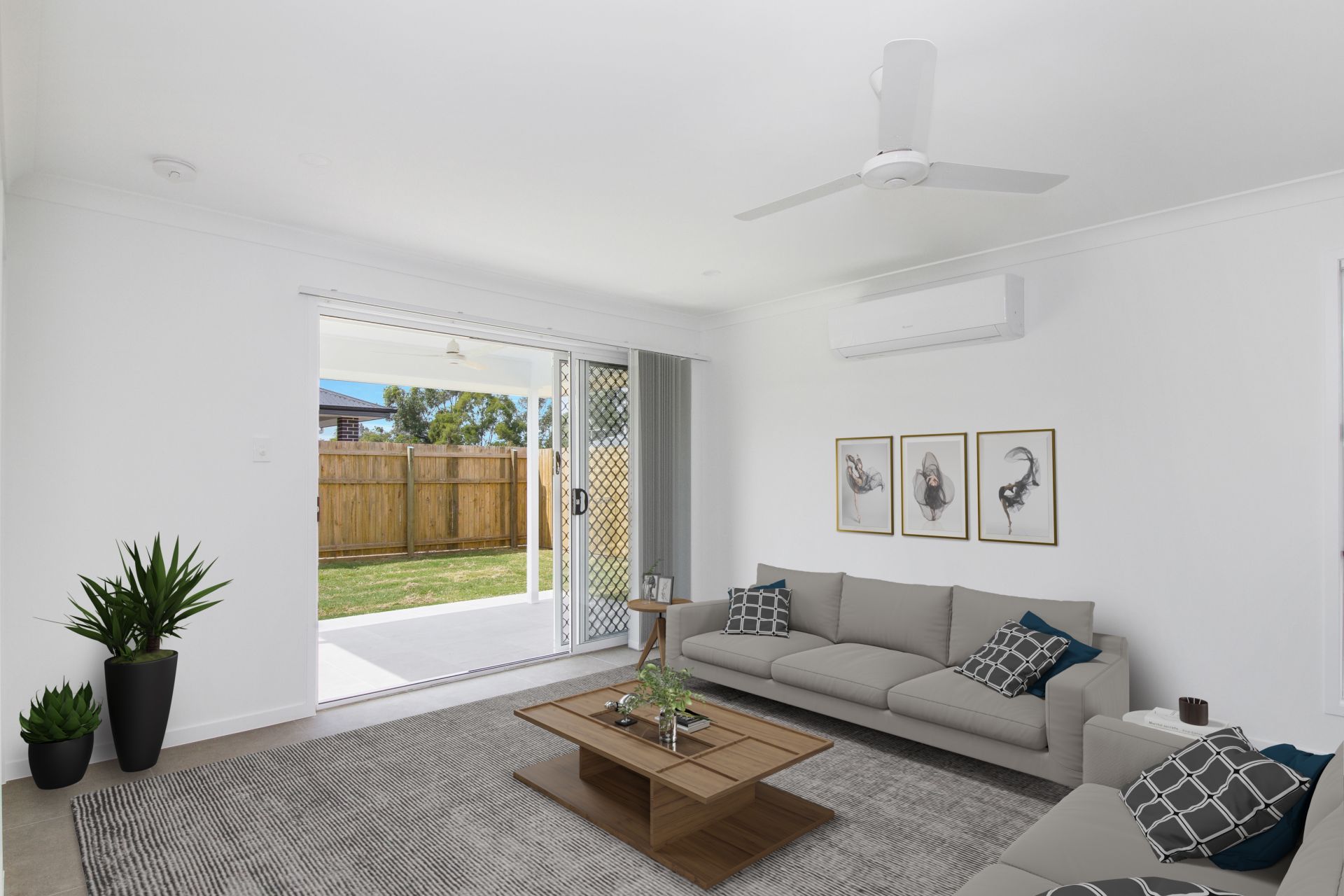 Open-plan living area with air-conditioning flowing through to the lounge